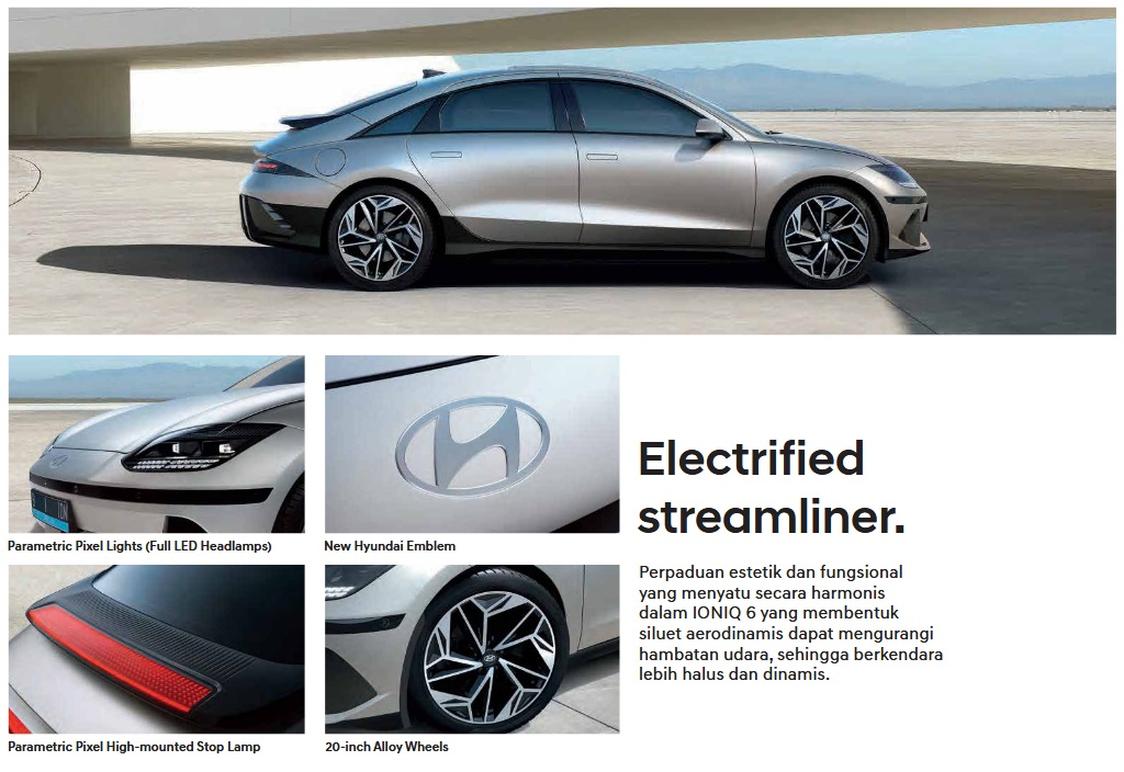 Dirancang untuk melengkapi kehidupan sehari-hari dengan memberikan ruang untuk membangkitkan potensi yang Anda punya. Melalui siluet aerodinamis, serta tampilan interior yang dirancang untuk memberikan kesenangan dalam berkendara. IONIQ 6 hadir untuk mewujudkan era baru mobilitas listrik.